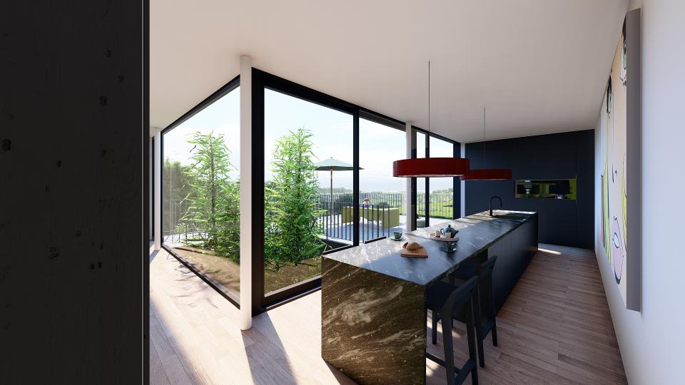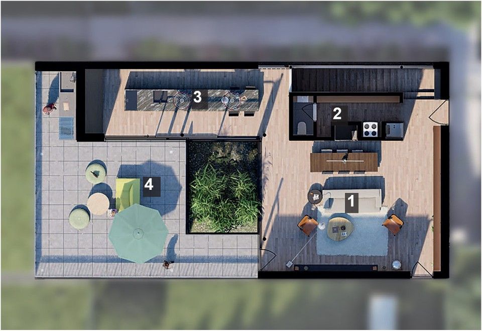 Dieses Wohnerlebnis inspiriert dazu, Zeit und Raum auf besondere Weise wertzuschätzen. Unter freiem Himmel lädt die großzügige Terrasse stets zu entspannten Begegnungen mit Wow-Effekt ein.